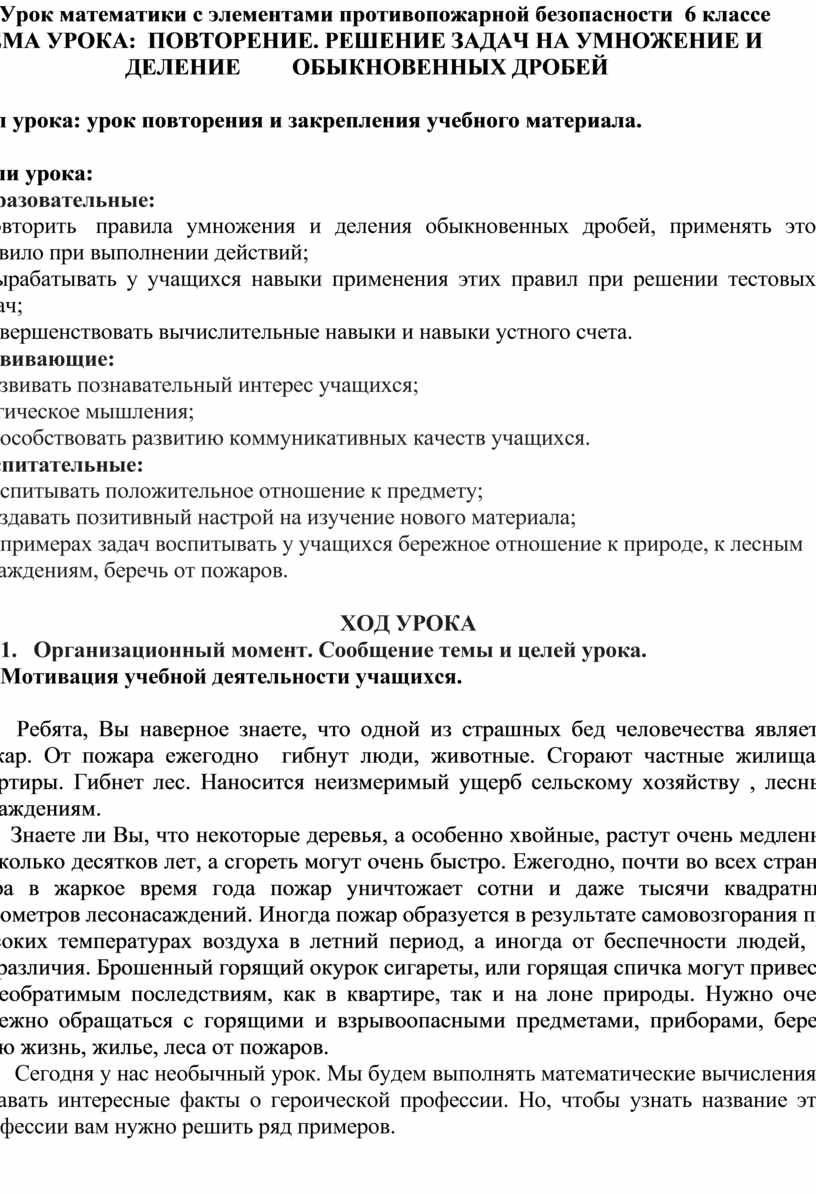 ТЕМА УРОКА: ПОВТОРЕНИЕ. РЕШЕНИЕ ЗАДАЧ НА УМНОЖЕНИЕ И ДЕЛЕНИЕ ОБЫКНОВЕННЫХ ДРОБЕЙ