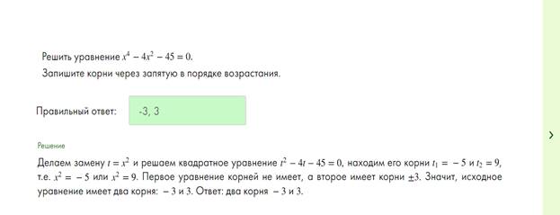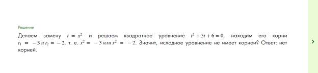 Действительно, мы возводим исходную переменную x в квадрат: t = x2, а затем рассматриваем квадратное уравнение уже от переменной t. Тем самым переменная x возводится в квадрат дважды.