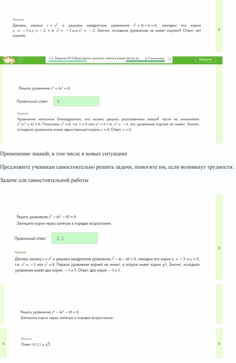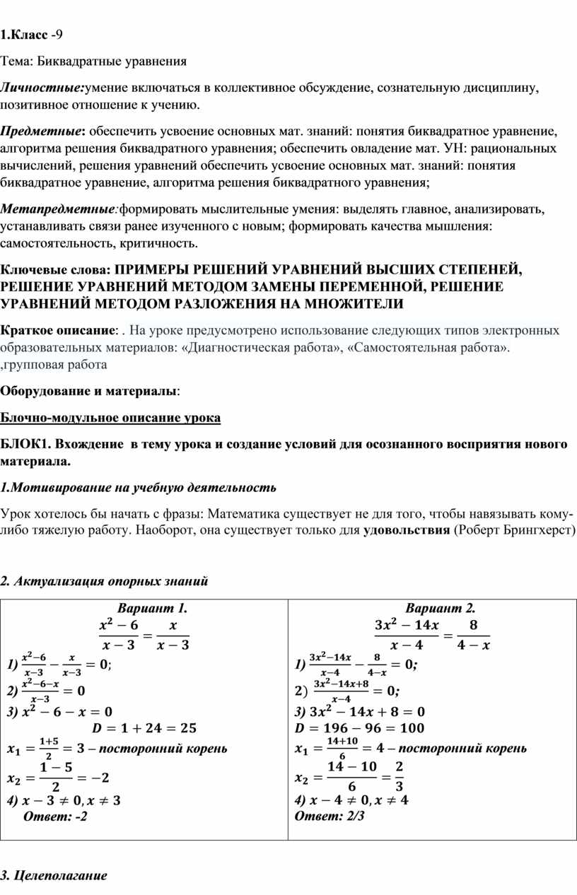Тема: Биквадратные уравнения