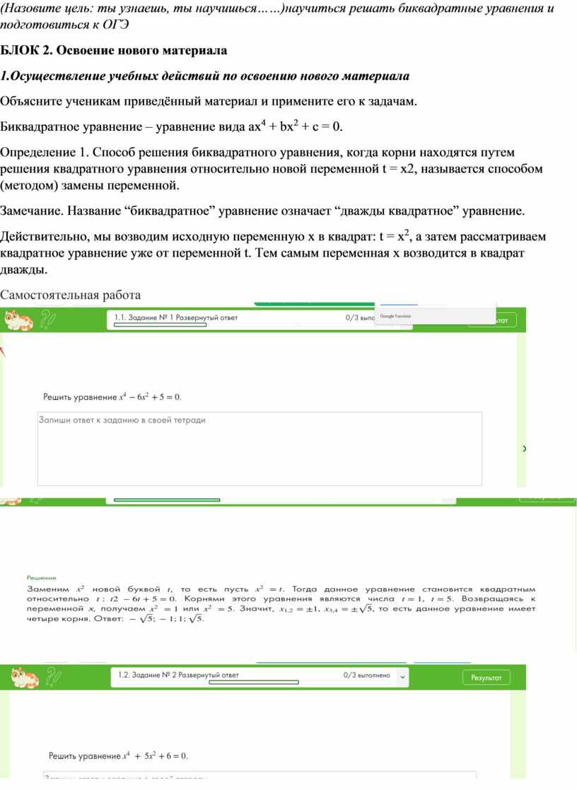 (Назовите цель: ты узнаешь, ты научишься……)научиться решать биквадратные уравнения и подготовиться к ОГЭ