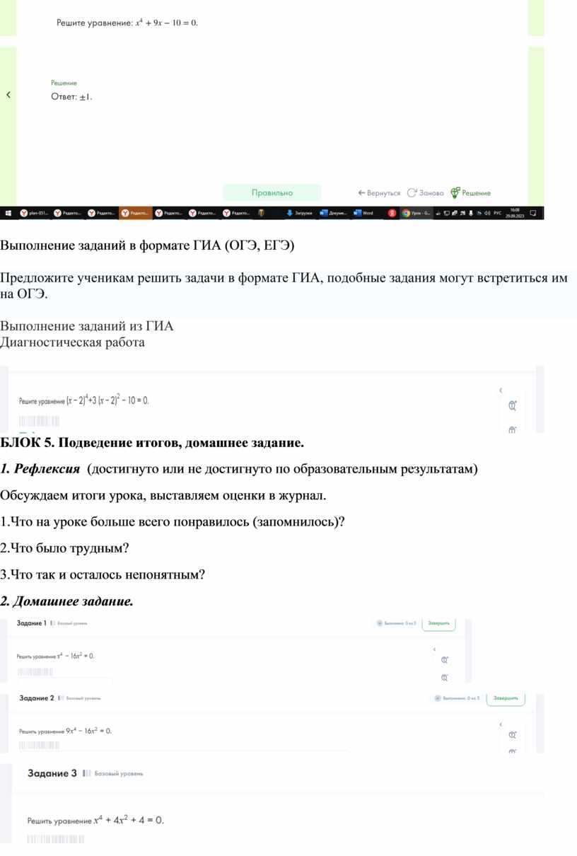 Выполнение заданий в формате ГИА (ОГЭ, ЕГЭ)