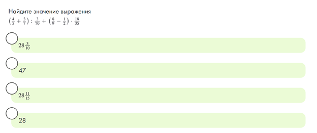 Для проверки полученных знаний ученикам предлагается самостоятельная работа из трех заданий, разделенных по уровню: все задания направлены на поиск значения выражения, их отличает уровень сложности.
