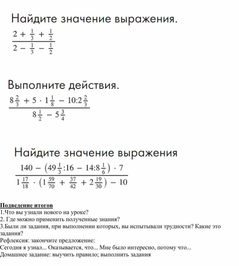 Тема: Числовые и буквенные выражения, содержащие обыкновенные дроби. Упрощение выражений