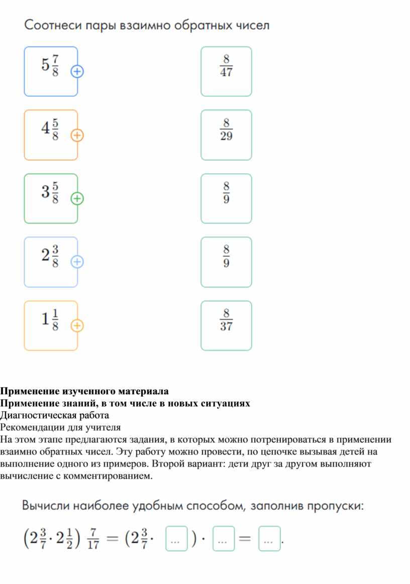 ВЗАИМНО ОБРАТНЫЕ ДРОБИ