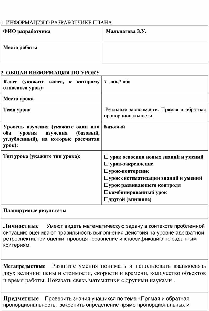 1. ИНФОРМАЦИЯ О РАЗРАБОТЧИКЕ ПЛАНА