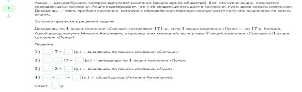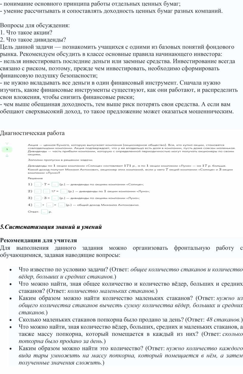 Цель данной задачи — познакомить учащихся с одними из базовых понятий фондового