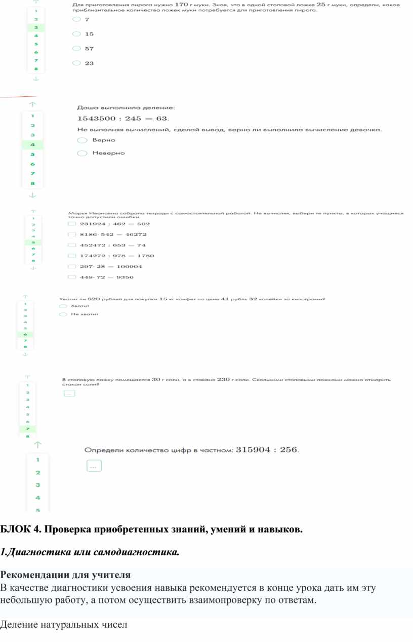 Тема: Деление натуральных чисел. Оценка и прикидка