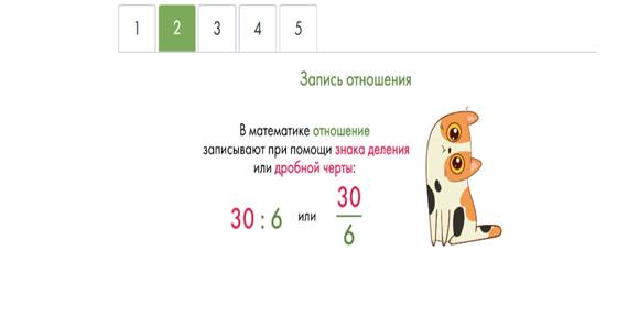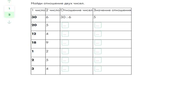 Перед выполнением задания 1 повторите, как записывается отношение: с помощью знака деления и дробной черты. В задании 2 обратите внимание учащихся на образец его выполнения. В этом задании отношение записывается с помощью знака деления.