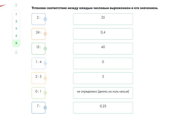 Прежде чем выполнить тест, повторите с классом, как разделить натуральное число на дробь. Обсудите результаты теста, обратите внимание на числовое выражение 25 : 0 (делить на ноль нельзя).