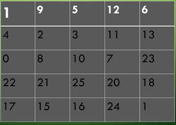 В таблице представлены числа от 0 до 25. Найдите пропущенное число.