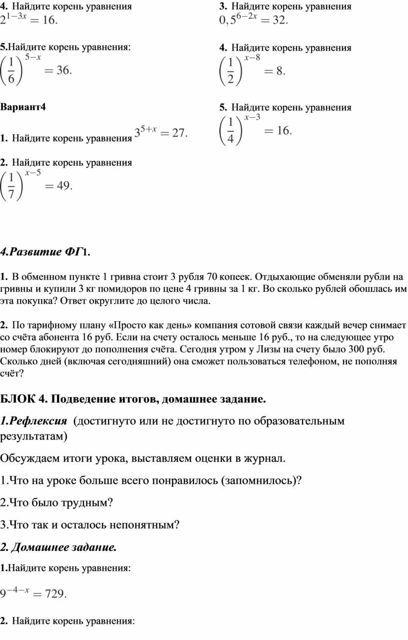 уравнения: