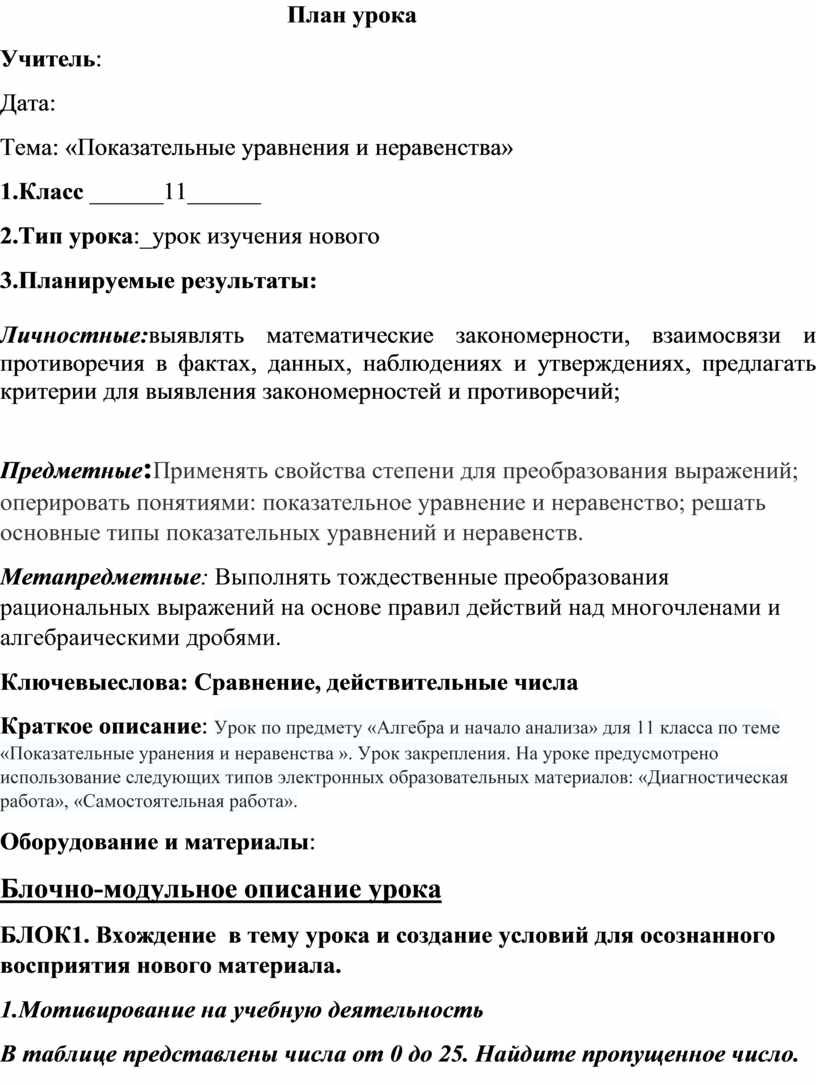 План урока