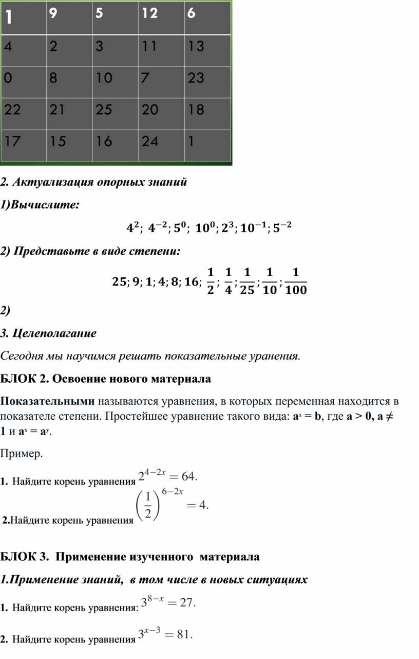 Тема: «Показательные уравнения и неравенства»