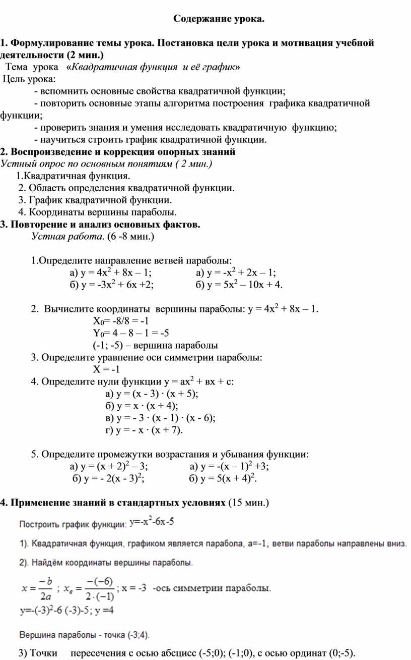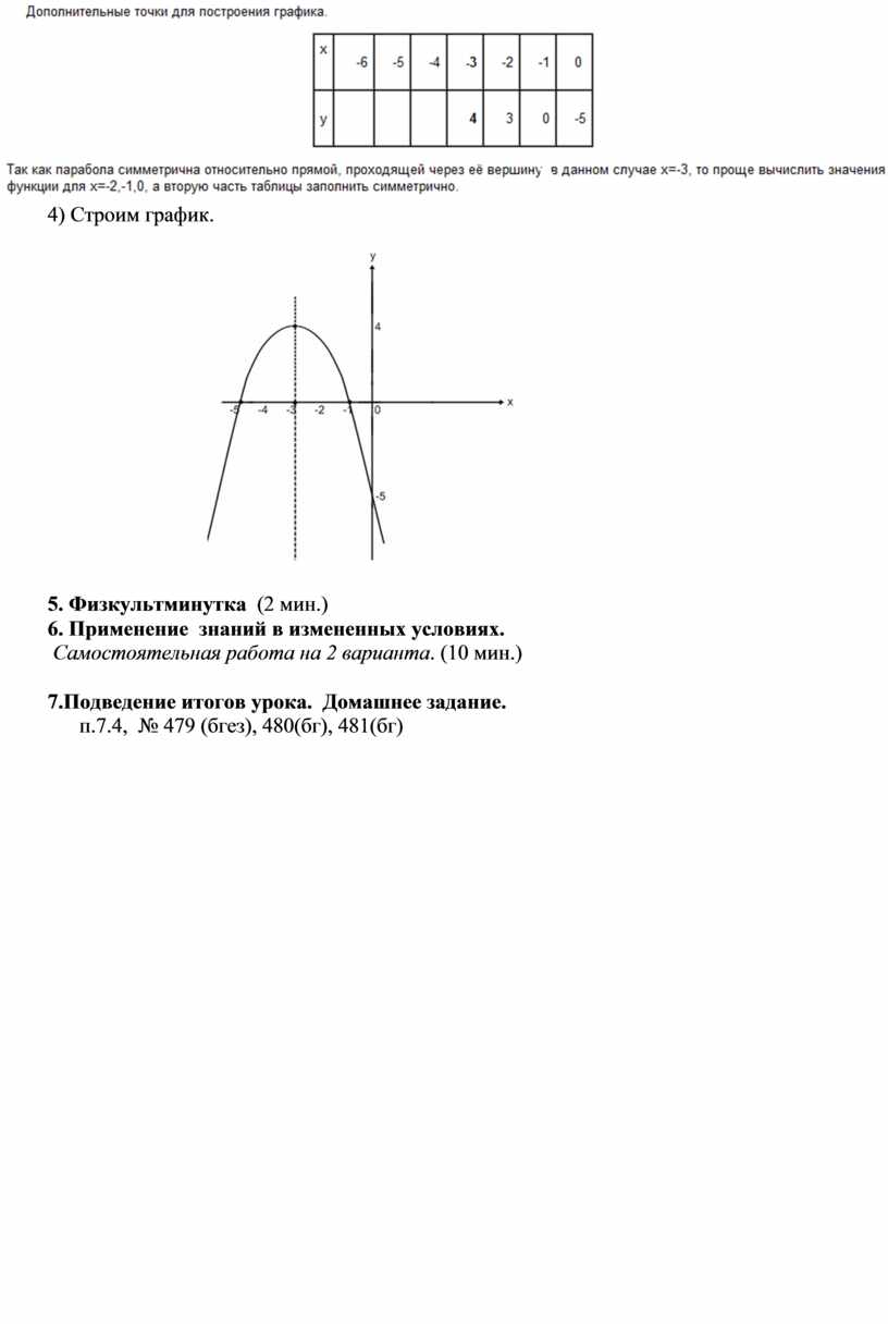 строить график квадратичной функции по алгоритму;