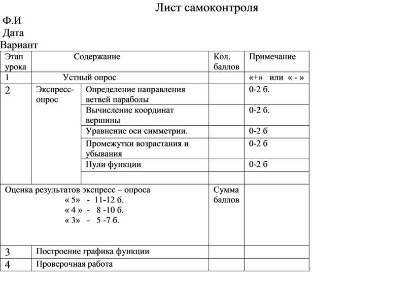 Лист самоконтроля