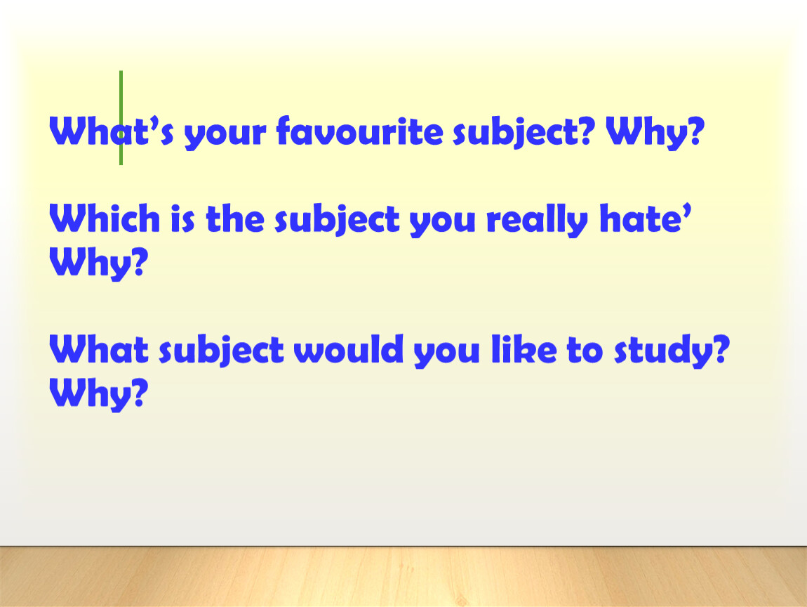 What’s your favourite subject? Why?Which is the subject you really hate’ Why?What subject would you like to study? Why?