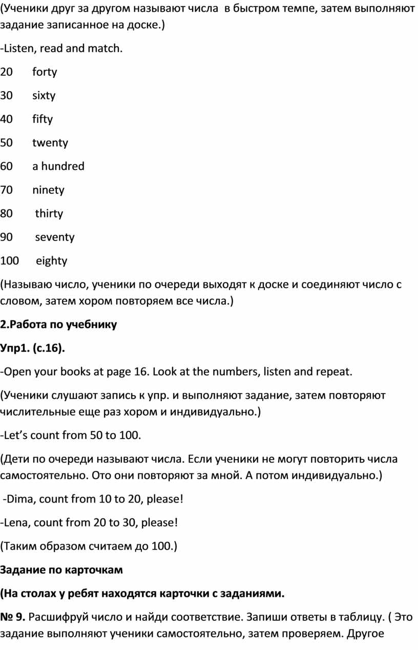 Цели: учить считать от 60 до 100, отвечать вопросы о возрасте и отвечать на них, познакомиться со звукоподражательными словами; развивать навыки аудирования, говорения, чтения, письма.