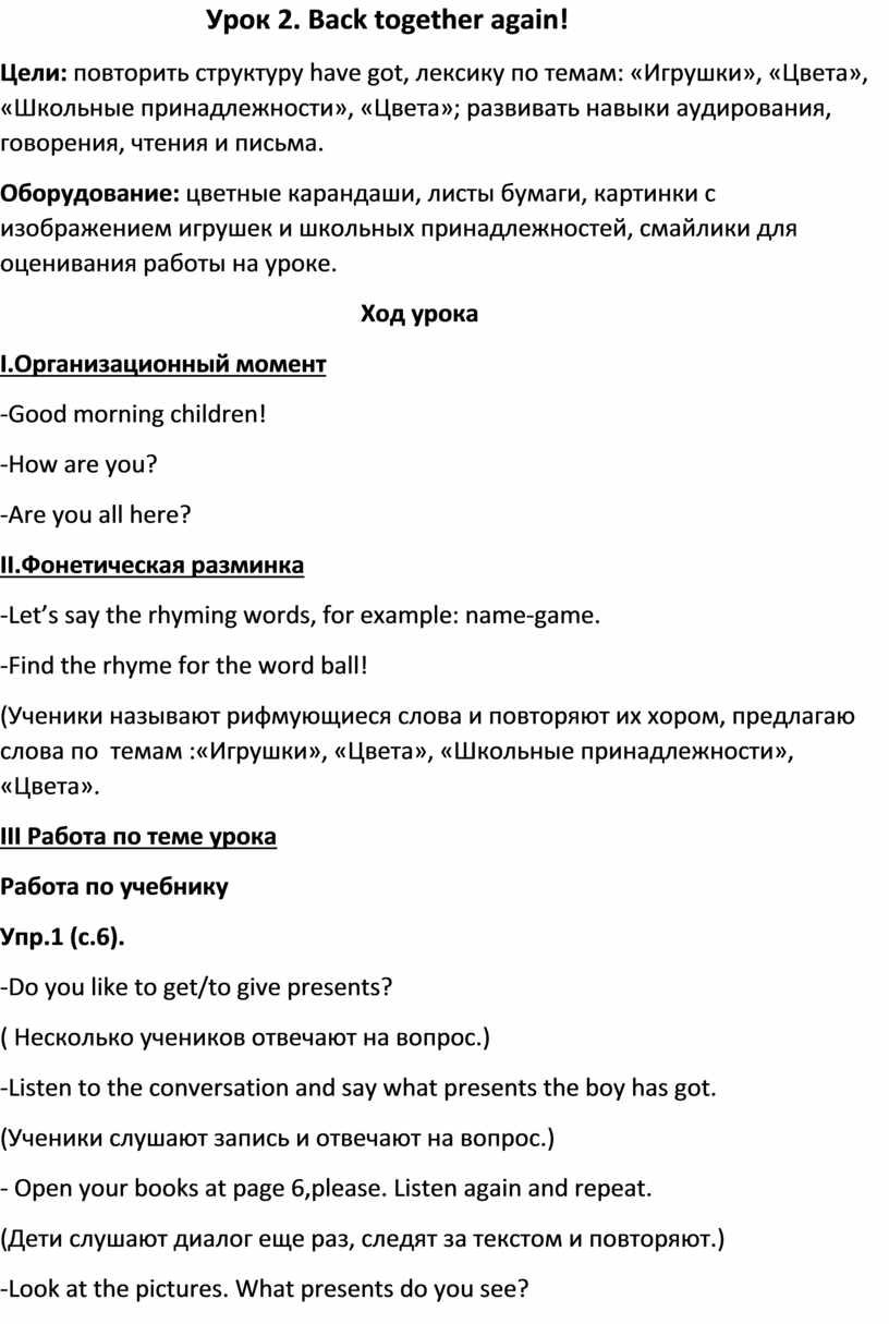 Цели: повторить структуру have got, лексику по темам: «Игрушки», «Цвета», «Школьные принадлежности», «Цвета»; развивать навыки аудирования, говорения, чтения и письма.