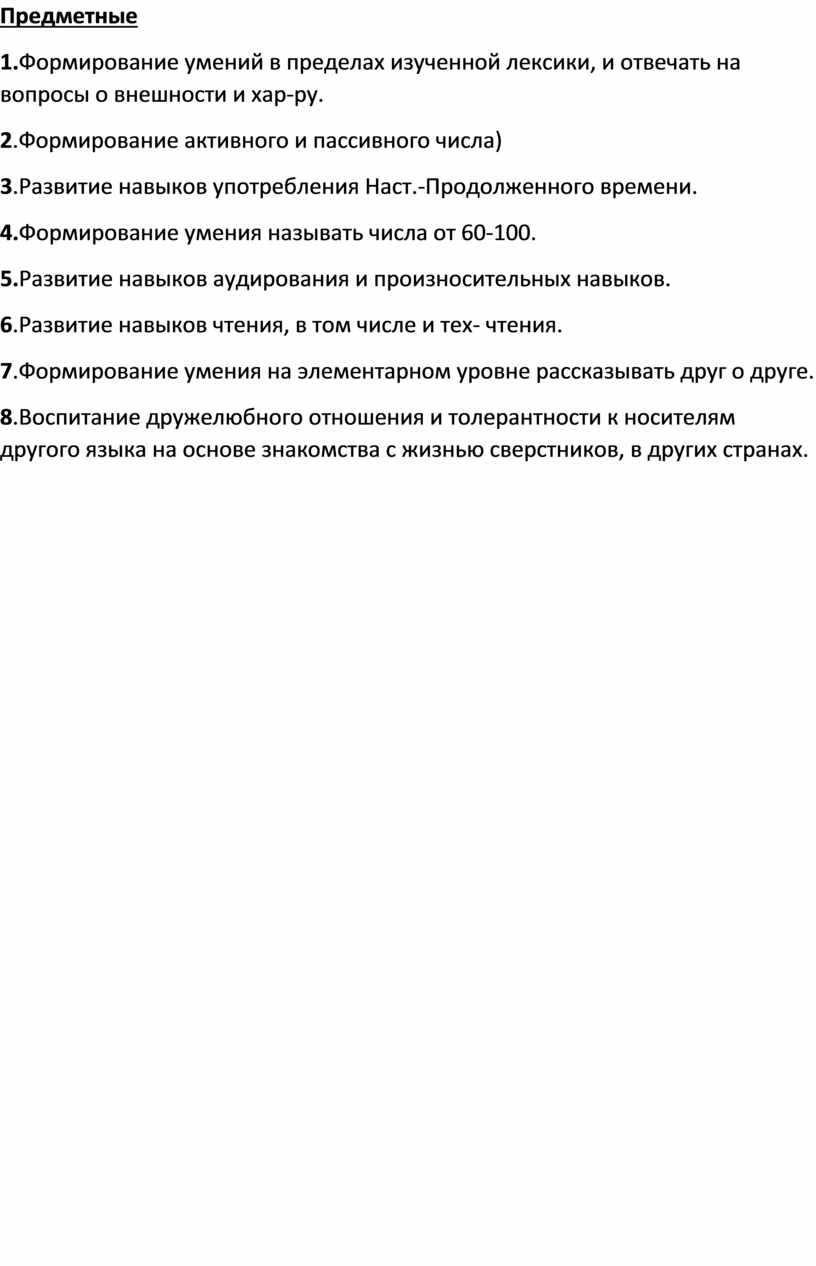 2.Формирование умения действовать по образцу при выполнении упражнений и составлении собственных высказываний в пределах изученных тем.