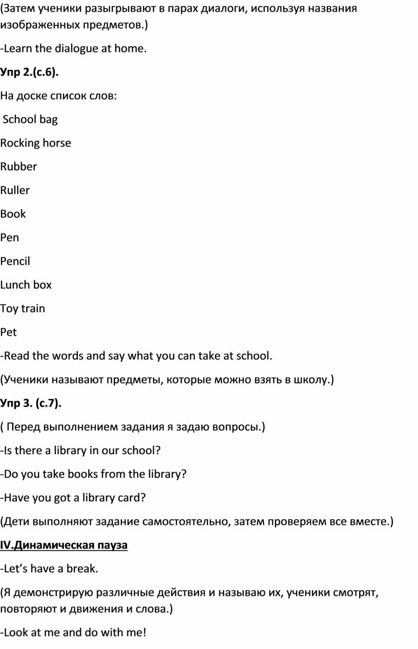 2.Формирование умения рассказывать о содержимом своей школьной сумки, используя конструкцию have got.