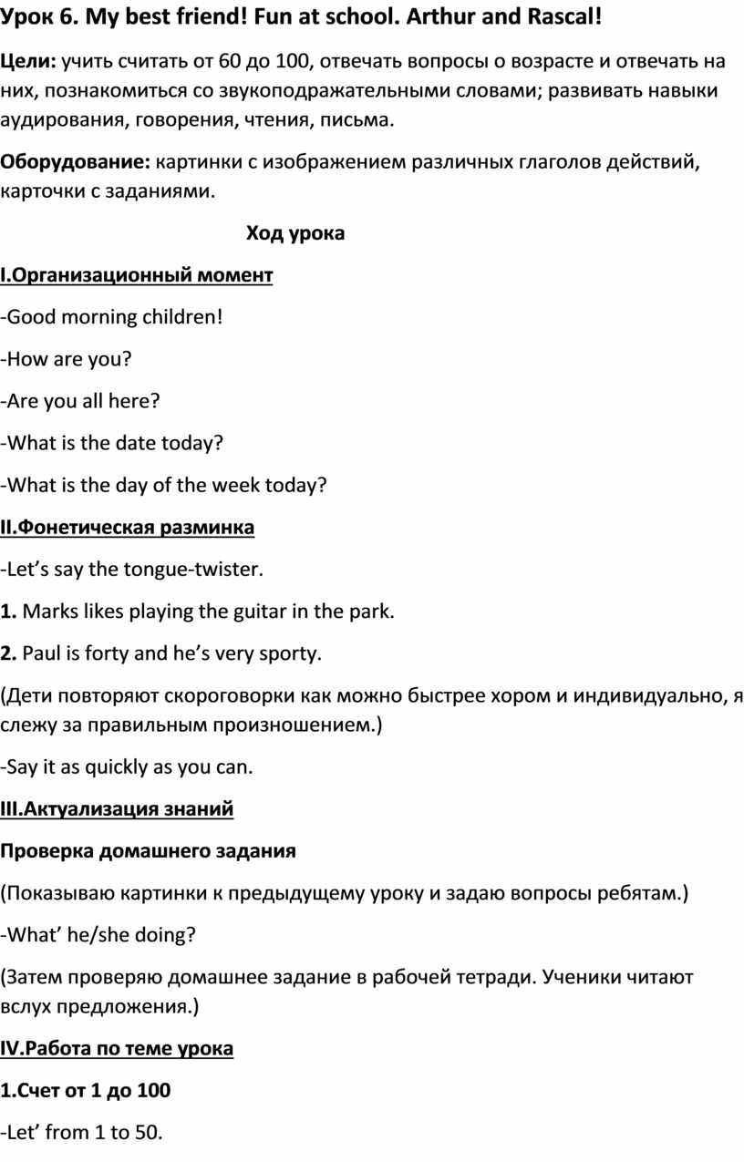 Урок 6. My best friend! Fun at school. Arthur and Rascal!