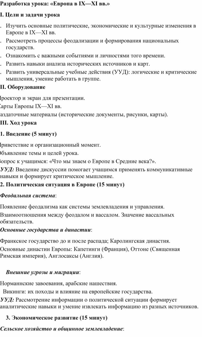 1. Изучить основные политические, экономические и культурные изменения в Европе в IX—XI вв.