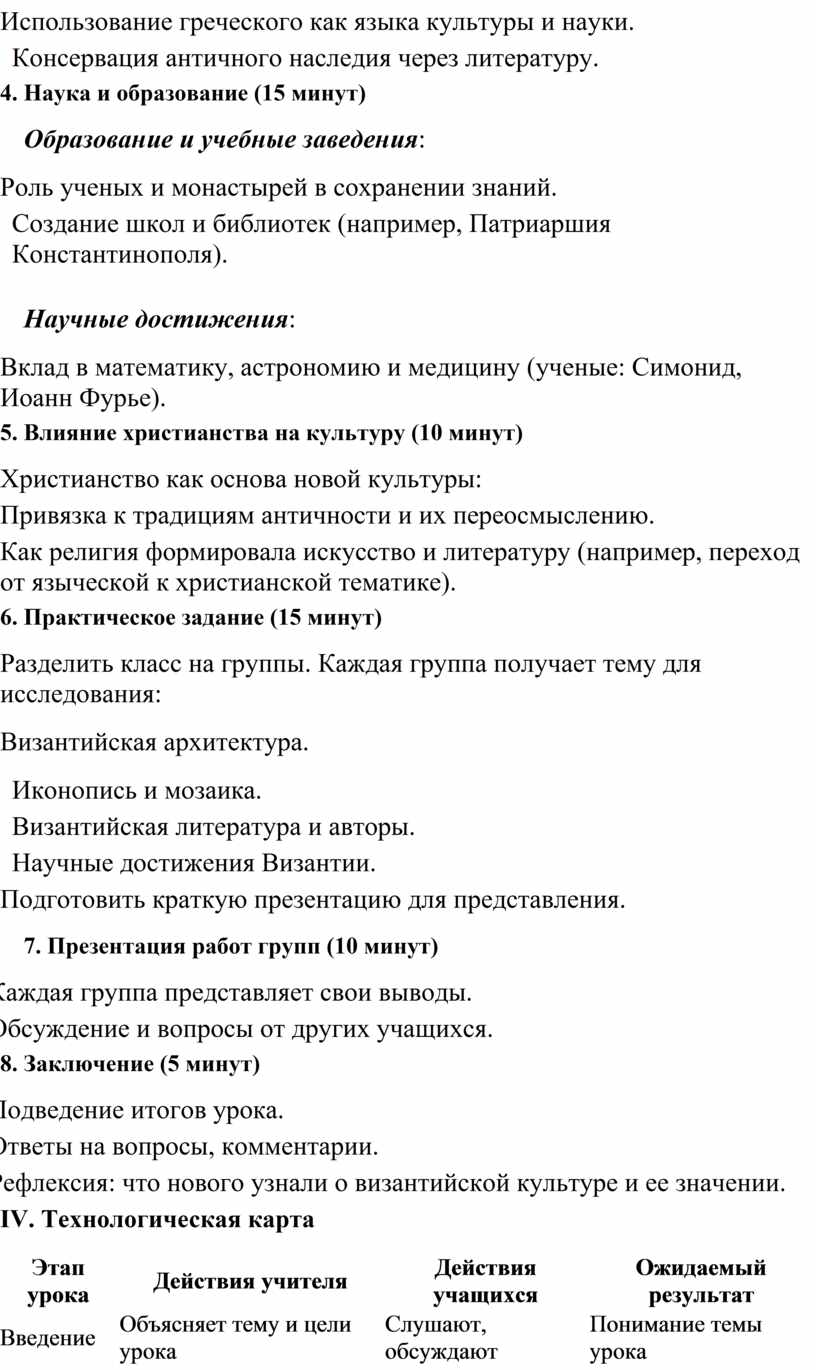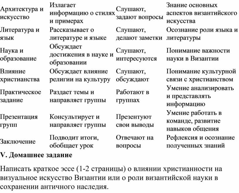 1. Изучить основные аспекты византийской культуры, включая искусство, архитектуру, литературу и науку.