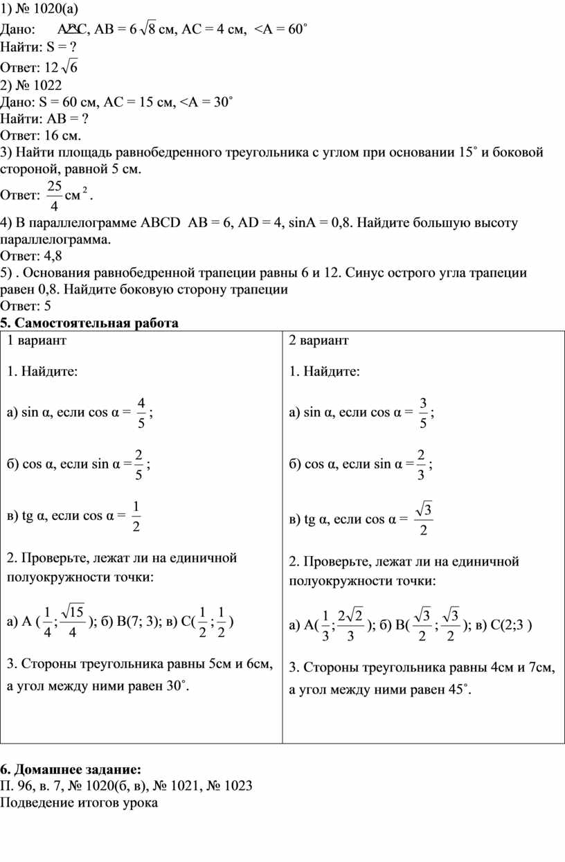 П. 96, в. 7, № 1020(б, в), № 1021, № 1023
