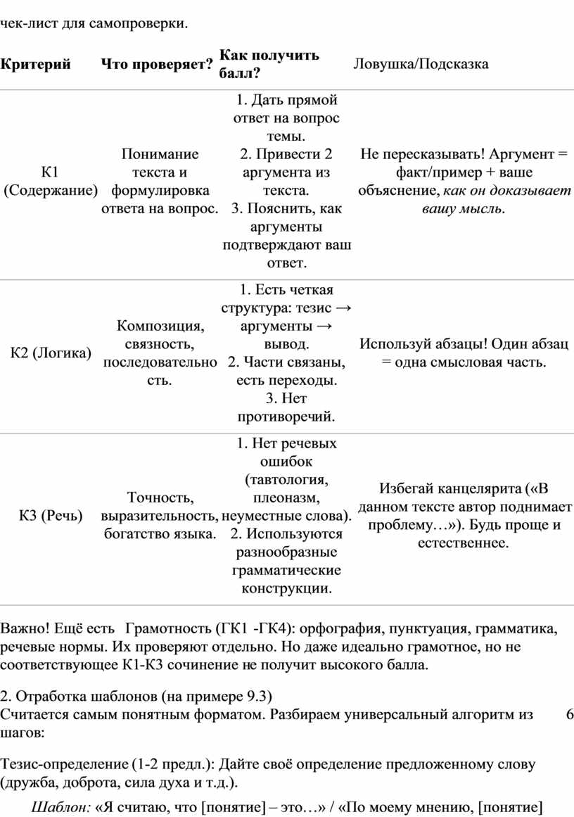 1. Базовый уровень: По предложенному тексту напишите сочинение 9.3, строго следуя разобранному 6-шаговому шаблону. Подчеркните клише.
