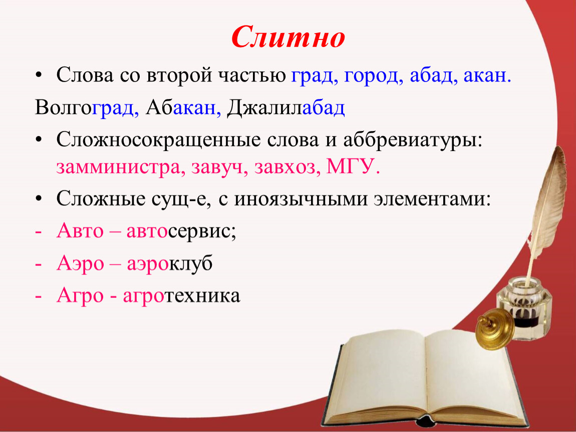 Сложносокращенные слова и аббревиатуры: замминистра, завуч, завхоз, МГУ.