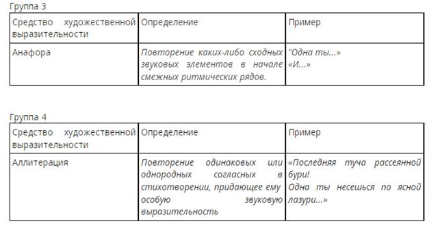 - организация анализа стихотворения, работы с художественными средствами выразительности в процессе анализа стихотворения,