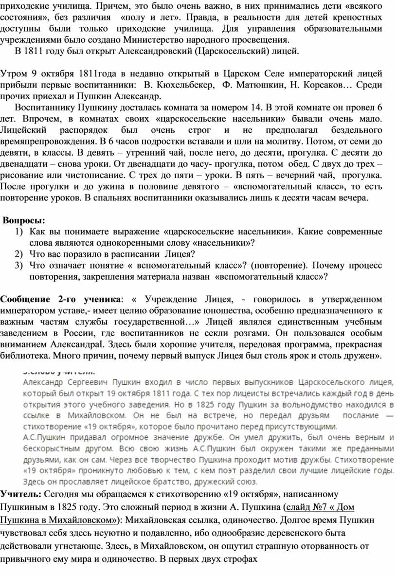 - открытие Лицея, 19 октября – день открытия Лицея, Пушкин и Лицей,