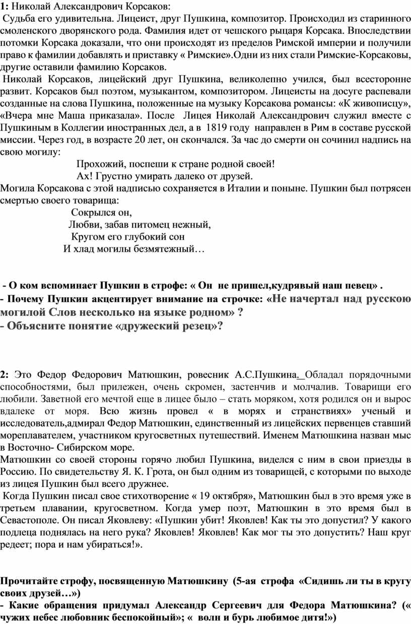 Прочитайте строфу, посвященную Матюшкину (5-ая строфа «Сидишь ли ты в кругу своих друзей…»)