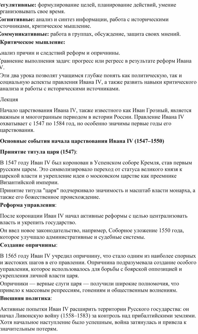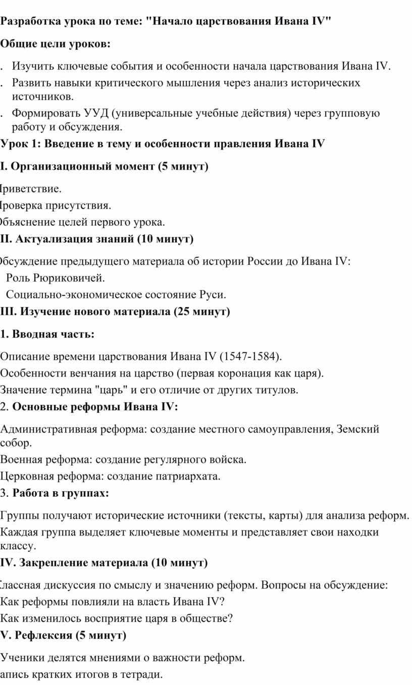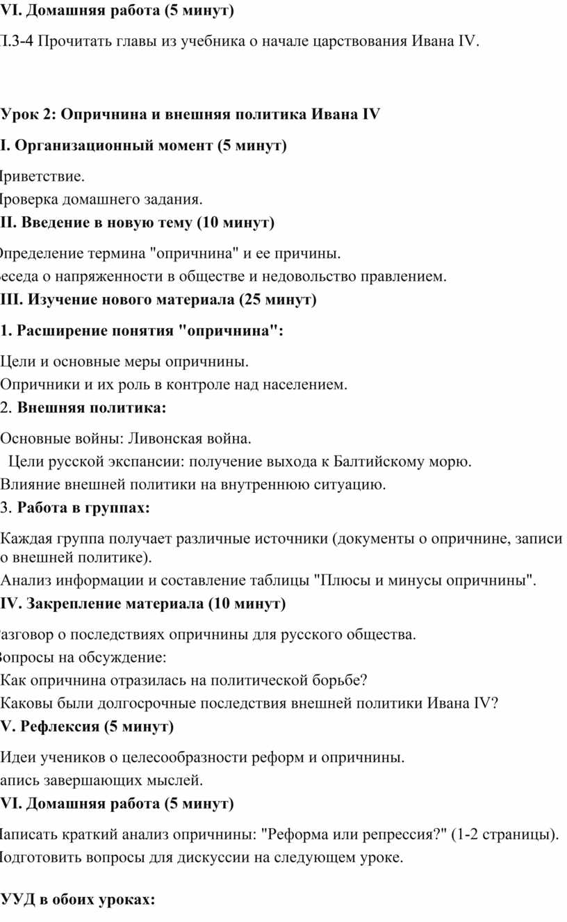 Эти два урока позволят учащимся глубже понять как политическую, так и социальную аспекты правления Ивана IV, а также развить навыки критического анализа и работы с историческими источниками.
