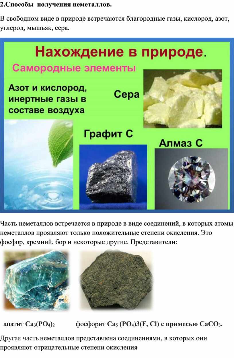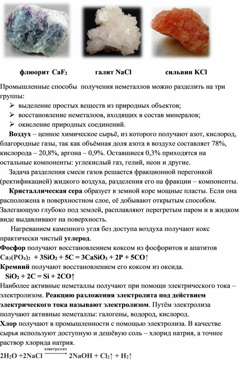 Промышленные способы получения неметаллов можно разделить на три группы:
