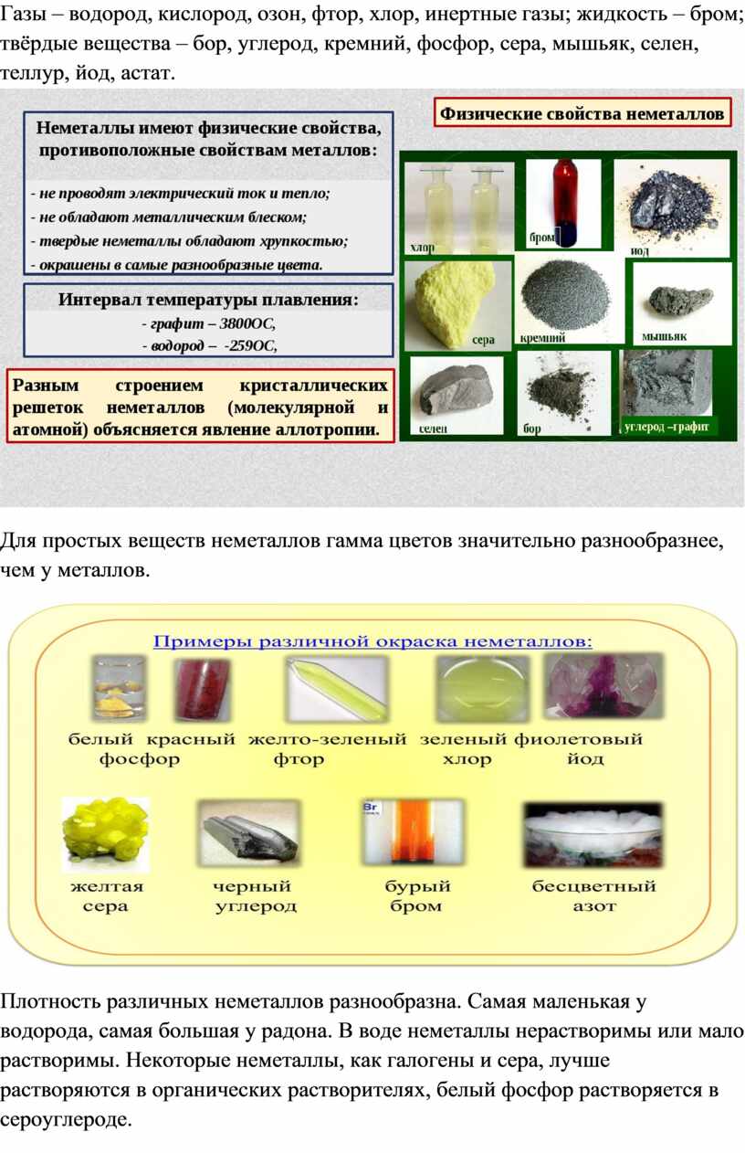 Для простых веществ неметаллов гамма цветов значительно разнообразнее, чем у металлов.