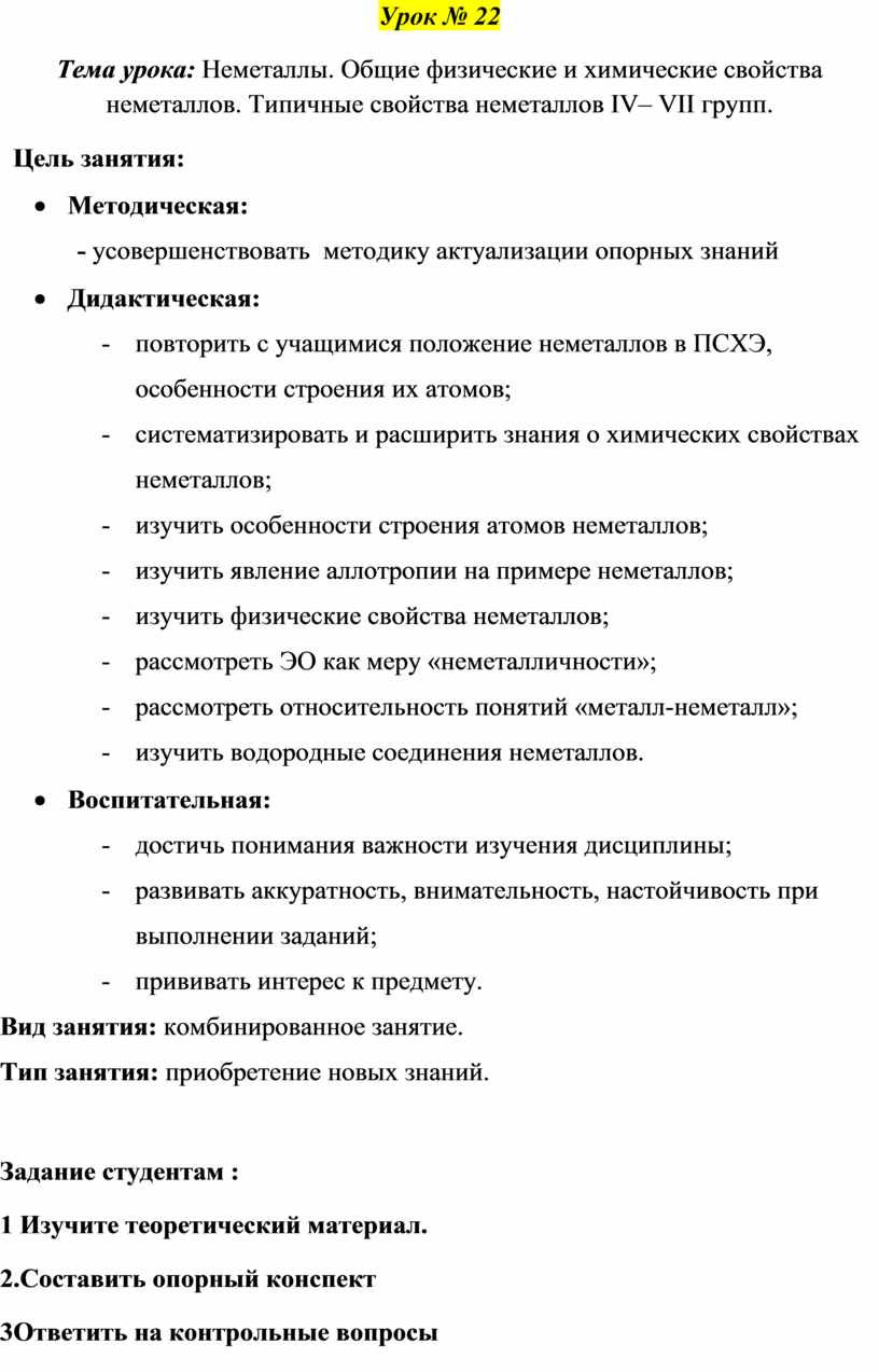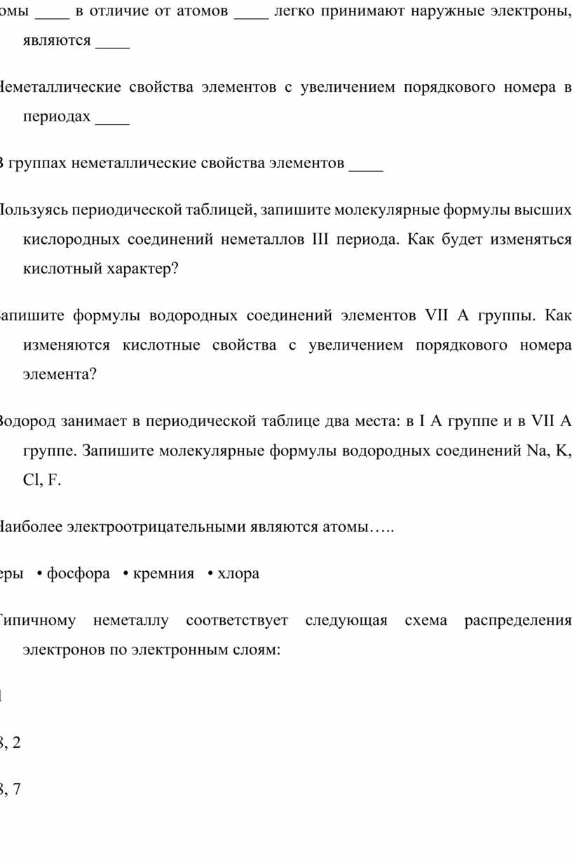 - повторить с учащимися положение неметаллов в ПСХЭ, особенности строения их атомов;