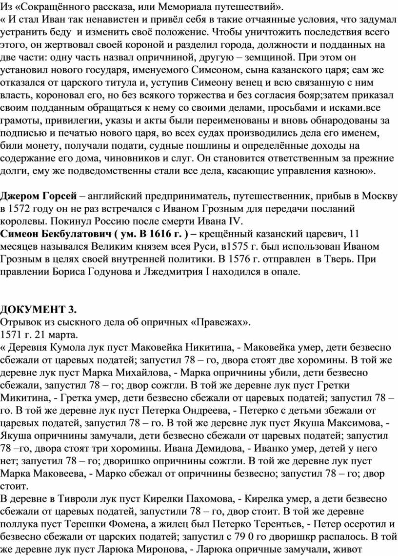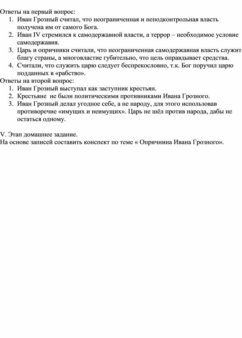 2. Ответьте на вопрос, сформулированный Н.И. Костомаровым: «Царь Иван (Грозный) рубил головы, топил, жёг огнём своих ближайших слуг: народ не роптал. Не заявлял ужаса и неудовольствия при виде множества казней, совершаемых часто всенародно. По этим признакам нельзя ли заключить, что царь Иван делал народу угоднее?»