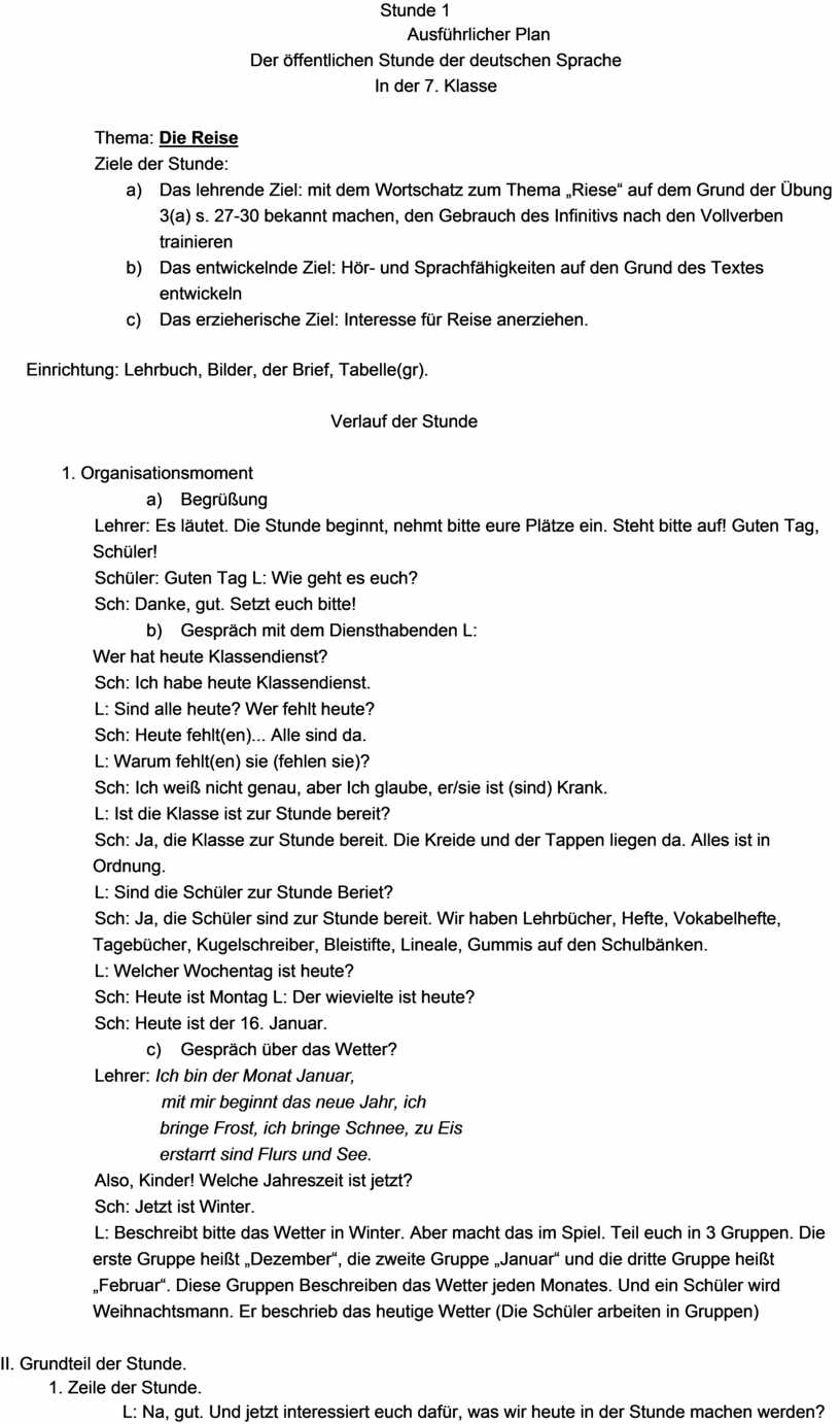 Lehrer: Es läutet. Die Stunde beginnt, nehmt bitte eure Plätze ein. Steht bitte auf! Guten Tag, Schüler!