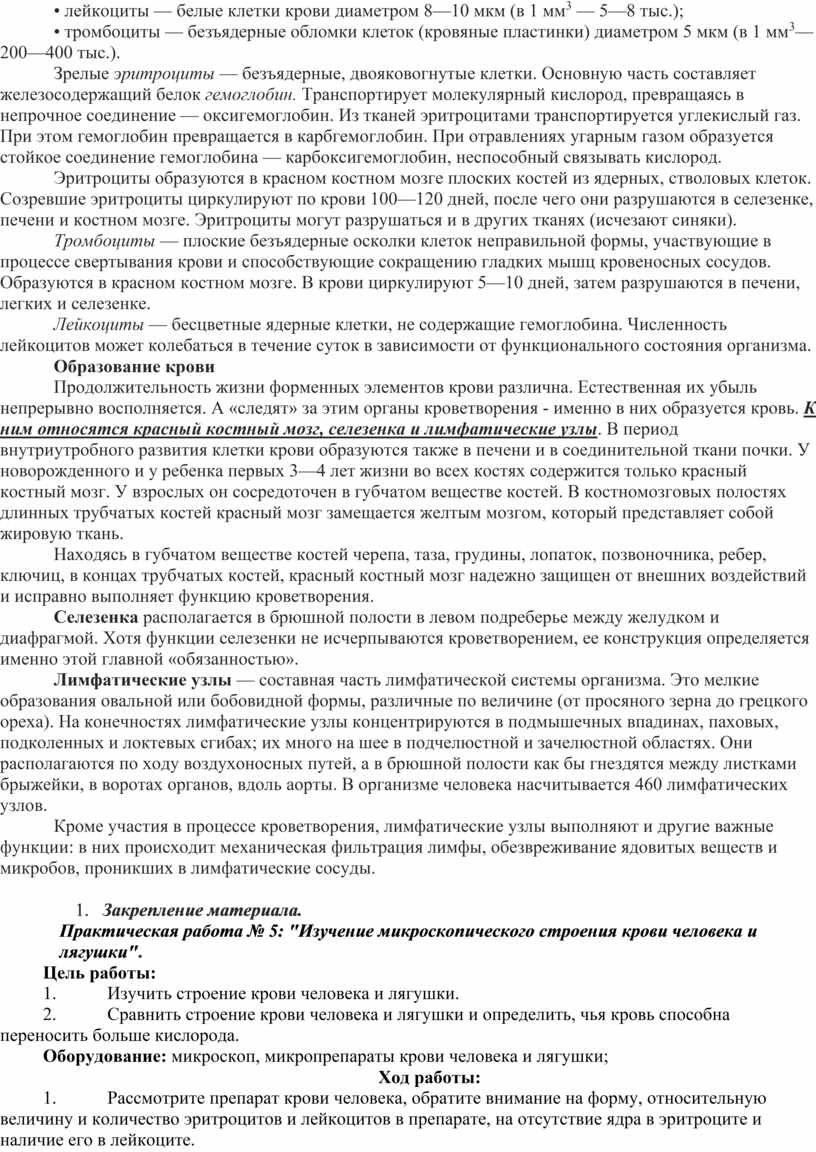 Практическая работа № 5: "Изучение микроскопического строения крови человека и лягушки".
