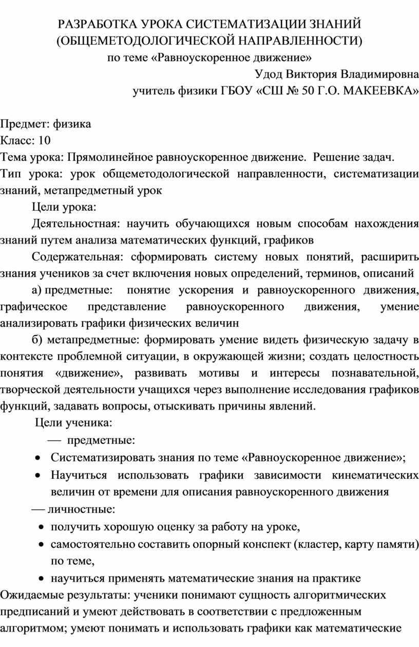РАЗРАБОТКА УРОКА СИСТЕМАТИЗАЦИИ ЗНАНИЙ (ОБЩЕМЕТОДОЛОГИЧЕСКОЙ НАПРАВЛЕННОСТИ)