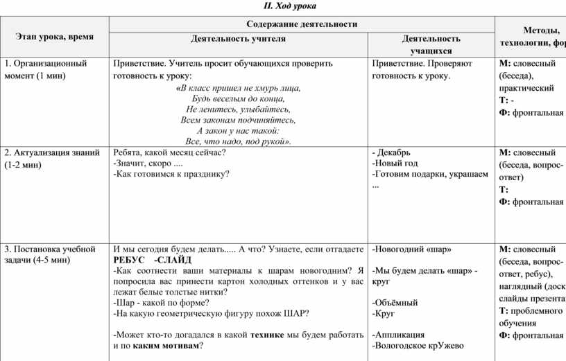II. Ход урока