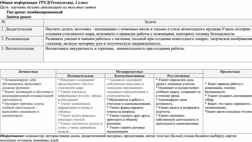 Научить делать заготовку - аппликацию с помощью ниток и тесьмы в стиле вологодского кружева.Узнать историю создания стеклянного шара, вспомнить о правилах работы с ножницами, повторить технику безопасности. |