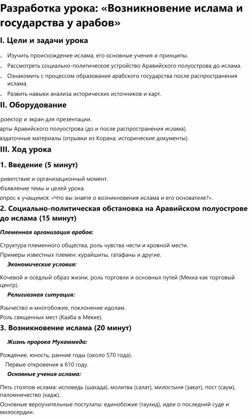 Раздаточные материалы (отрывки из Корана, исторические документы).