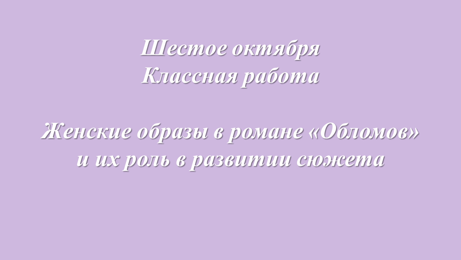 выявить роль женских образов в раскрытии характера Обломова, а также идейного замысла романа.