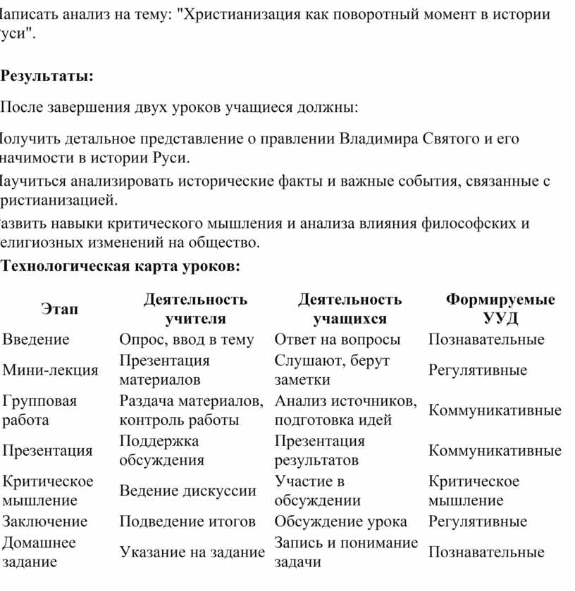Научиться анализировать исторические факты и важные события, связанные с христианизацией.