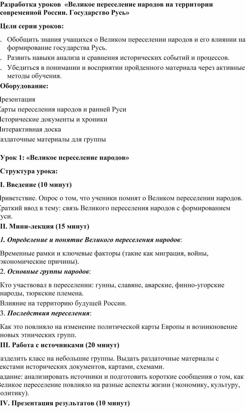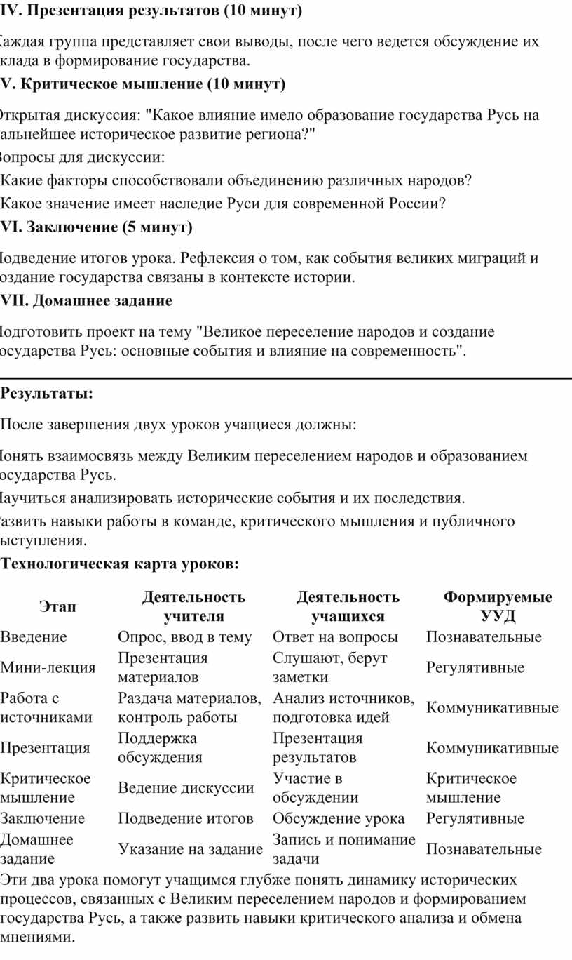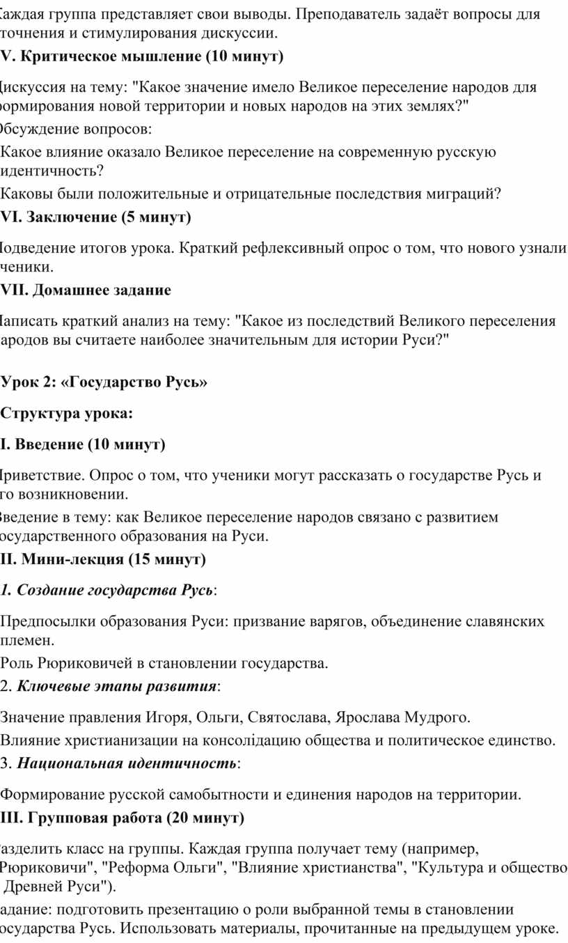 Эти два урока помогут учащимся глубже понять динамику исторических процессов, связанных с Великим переселением народов и формированием государства Русь, а также развить навыки критического анализа и обмена мнениями.
