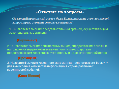 Цель: проверить уровень информационно-правовых знаний, норм Конституции, основ информатизации