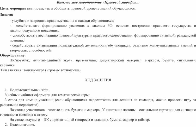 Цель мероприятия: повысить и обобщить правовой уровень знаний обучающихся.