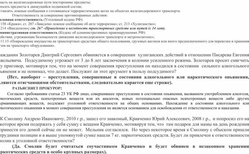 Любое постороннее вмешательство в деятельность железнодорожного транспорта незаконно, оно преследуется по закону и влечет за собой уголовную и административную ответственность.